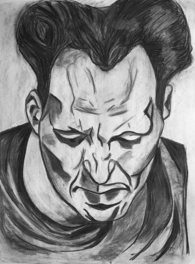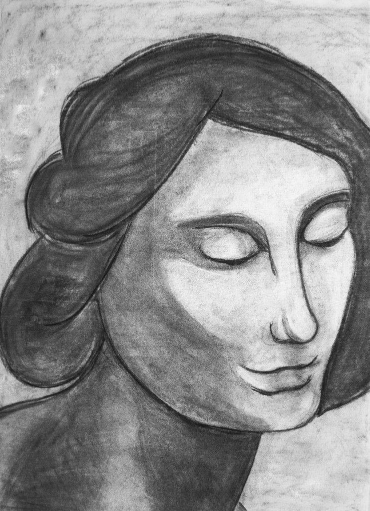 Large-scale charcoal portrait copy on drawing paper.